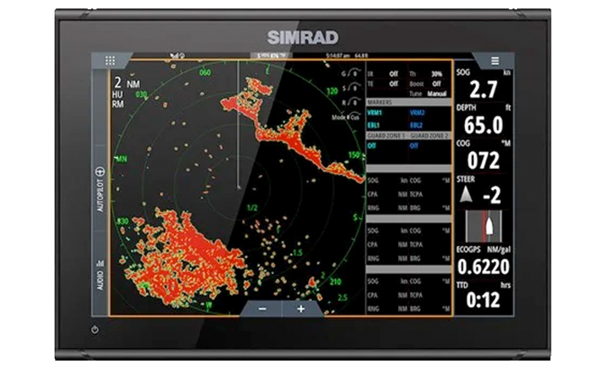 NSS12 evo3S har en högupplöst 12-tumsskärm som ger dig överblick över sjökort, radar, ekolod och annat under alla förhållanden. Med den nya iMX 8-processorn med hög prestanda och supersnabba svarstider har du kontroll över en helt ny nivå av inbyggda funktioner, mycket breda betraktningsvinklar och tillförlitlig pekskärms- eller knappsatskontroll. Innehåller globalt standardsjökort.